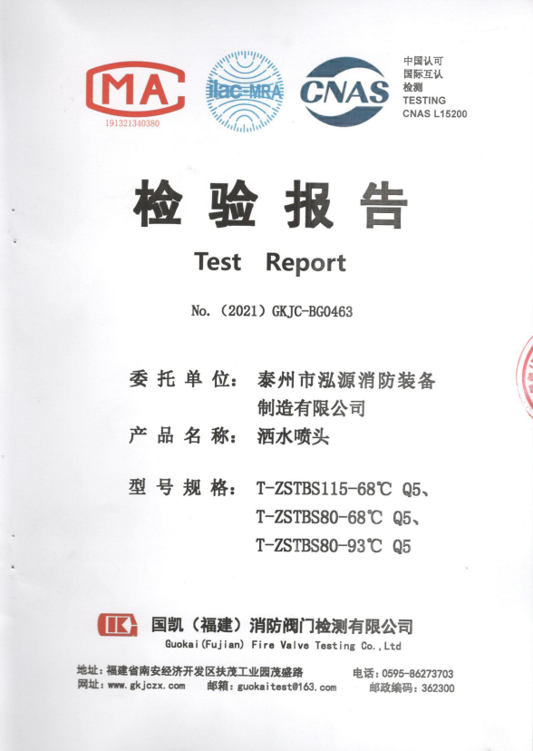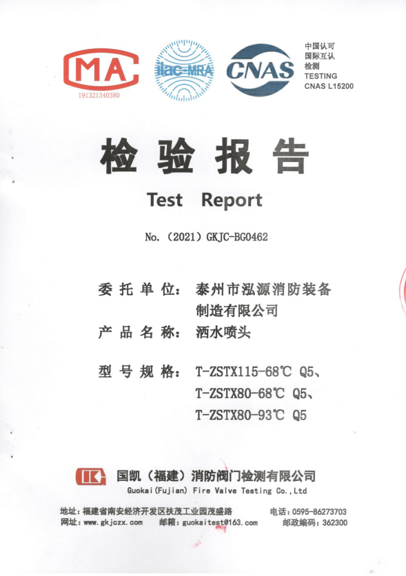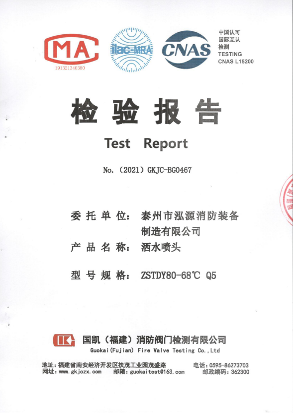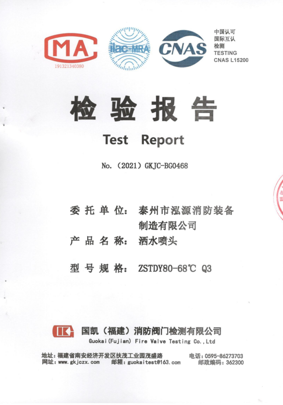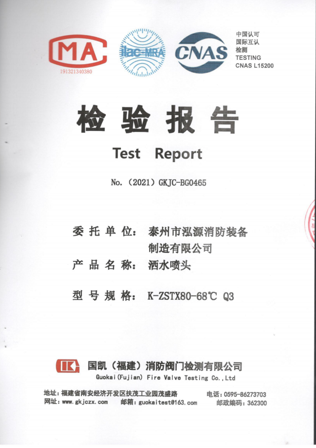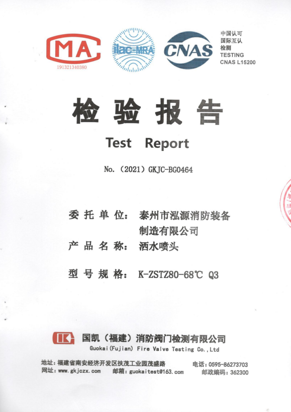 啟真灑水噴頭ZSTDY80-68°C Q3檢驗報告