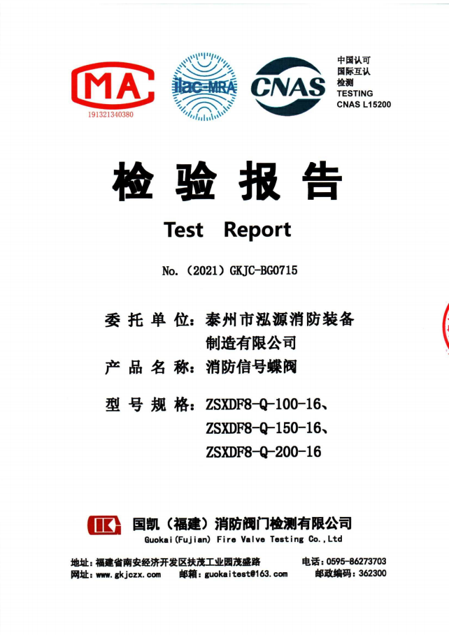啟真溝槽消防信號蝶閥ZSXDF8-Q檢驗報告