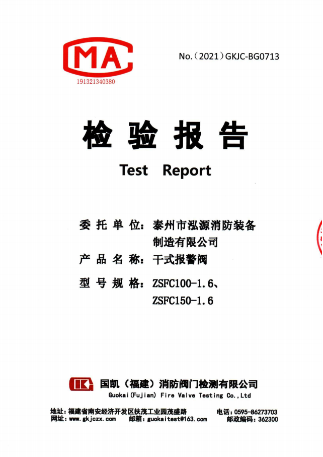 啟真干式報警閥ZSFC檢驗報告