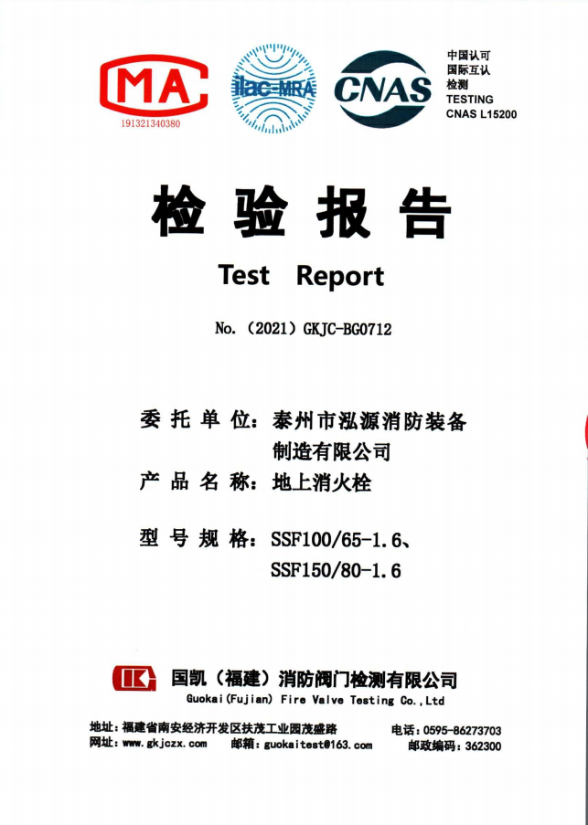 啟真溝槽消防信號閘閥ZSXZF8-Q檢驗報告